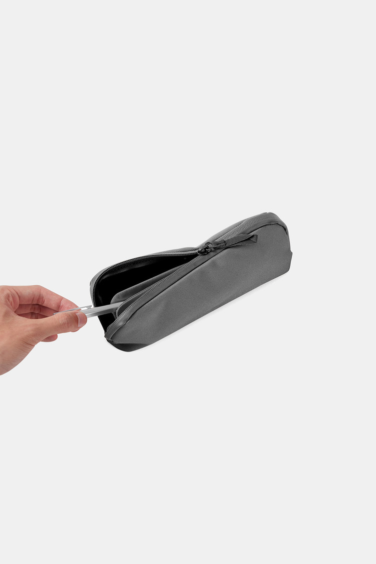 중앙 디바이더로 공간이 나눠져있어요. 디바이더 사이 공간에 자주 사용하는 펜을 넣어두면 필통을 다 열지 않고도 바로 꺼낼 수 있어요.