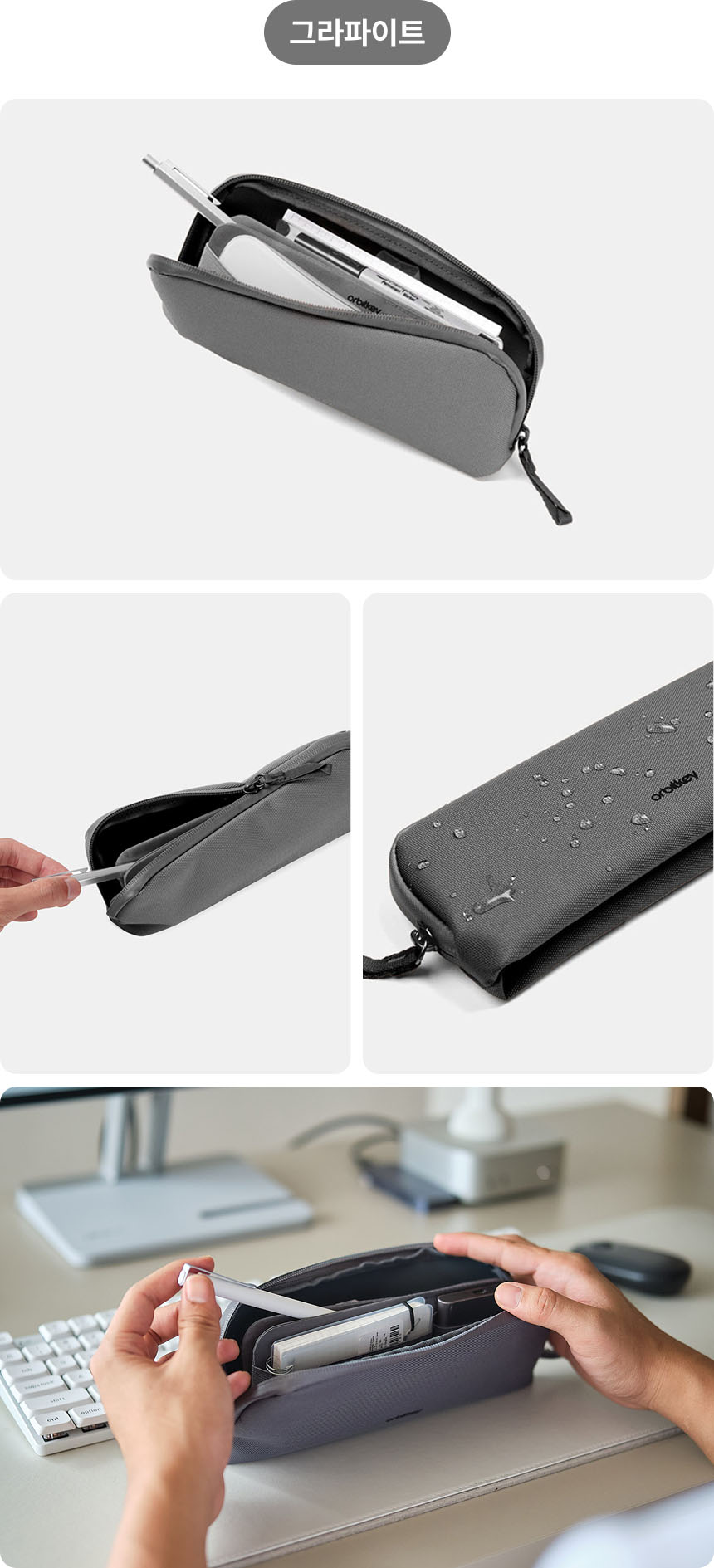 물기에 민감한 디지털 액세서리들을 물기로부터 안전하게 보호하세요. 지퍼까지 방수처리 완료!