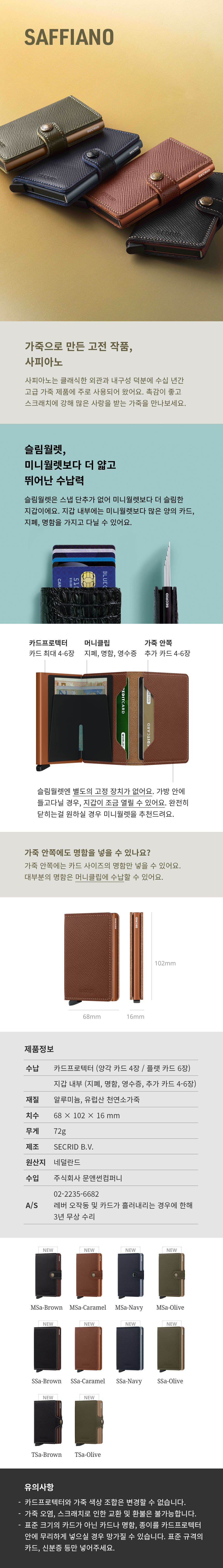 슬림월렛은 스터드 잠금 장치가 없어 미니월렛보다 더 슬림한 디자인이 구현되었습니다. 군더더기 없이 깔끔한 이 제품은 겉옷의 가슴주머니에 완벽하게 맞는 크기로 제작되었습니다. 지갑 내부에는 미니월렛보다 많은 양의 카드, 명함, 지폐를 가지고 다닐 수 있는 충분한 공간이 마련되어 있습니다.